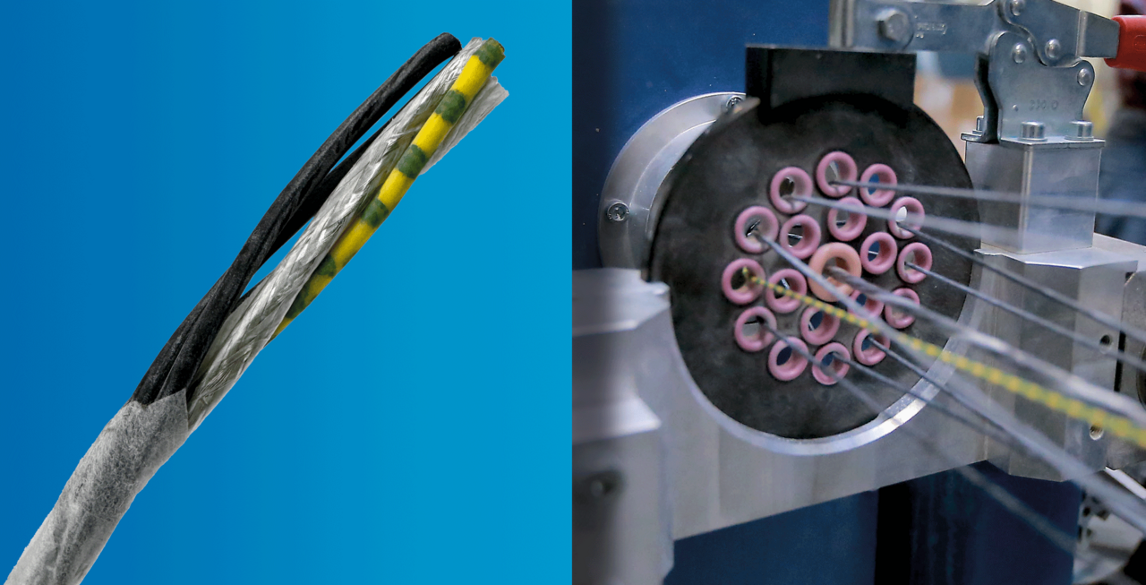 The insulated conductors are now combined into multi-core cables and twisted together at defined lay lengths to optimize electrical and mechanical properties. For dynamic applications, such as in drag chains, a special counter-twisting process is often used to reduce torsional stress in the cable. Filler elements ensure a stable, round cable geometry.