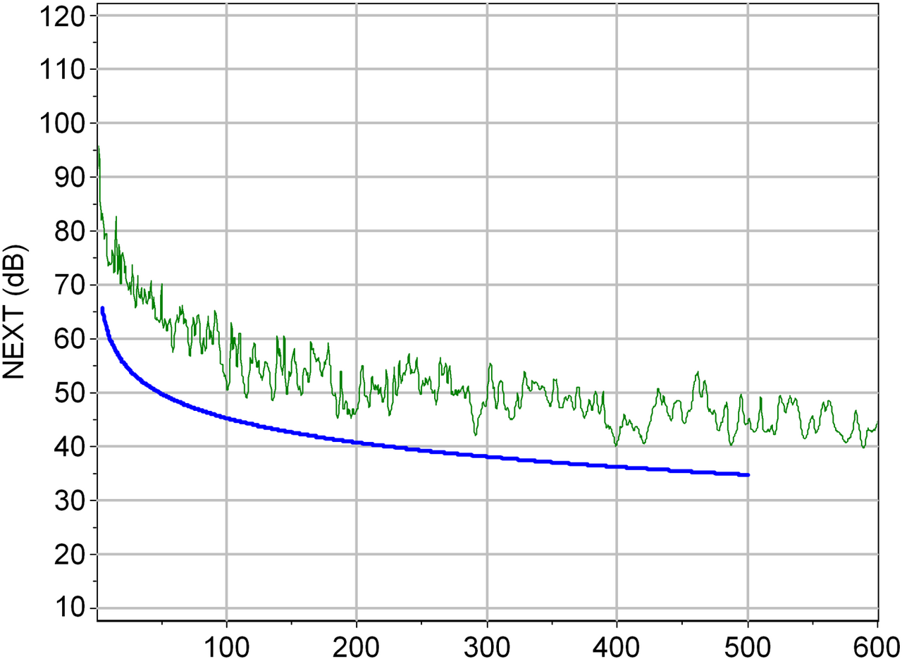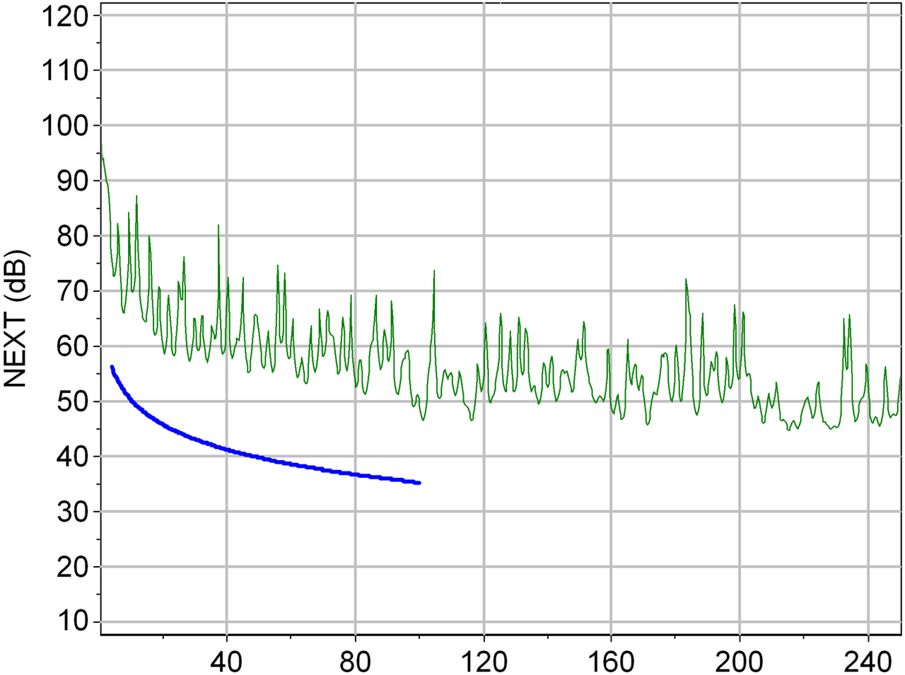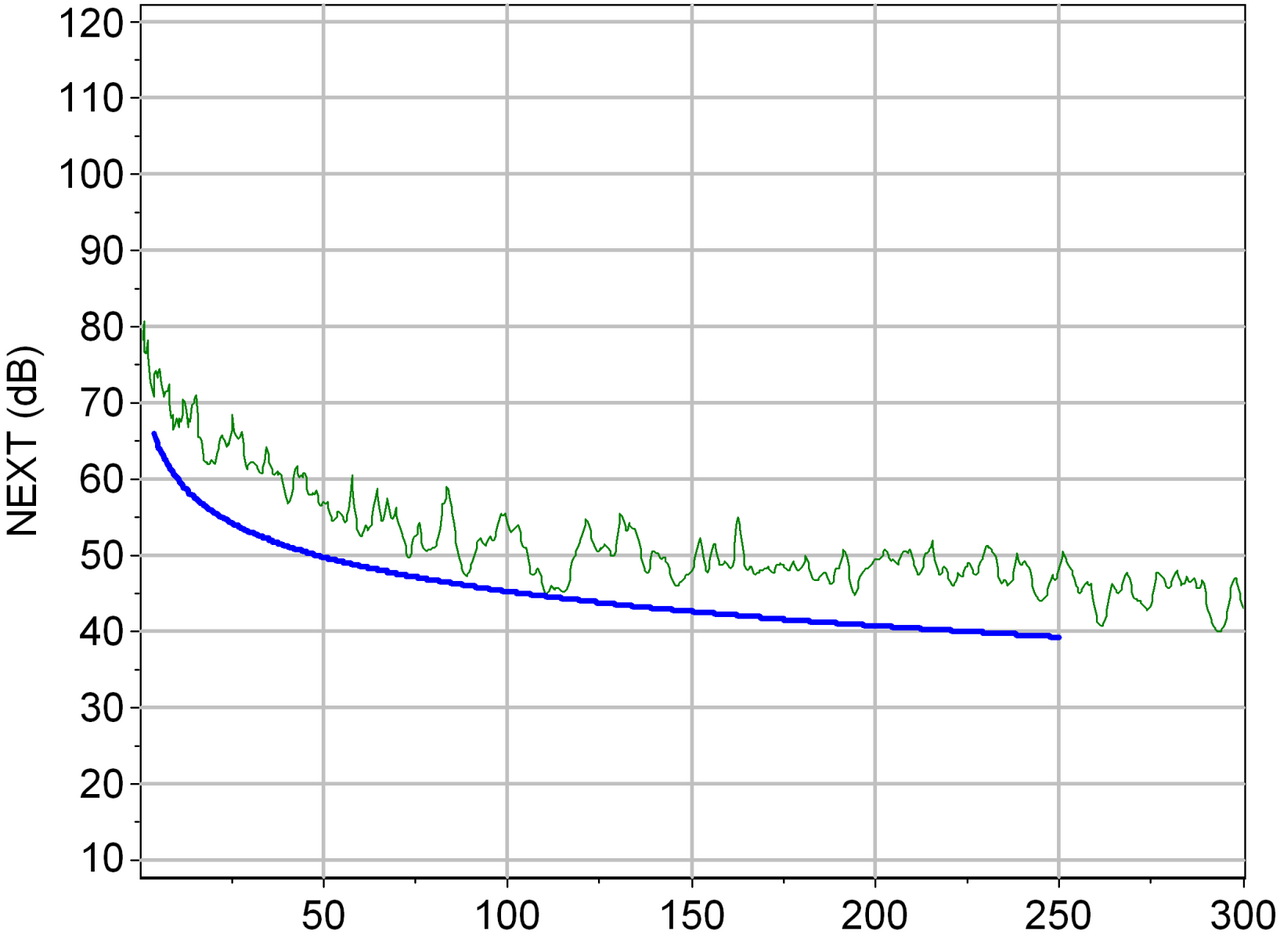 | crosstalk (Next) | dB | 65,3 | 56,3 | 50,3 | 47,2 | 45,8 | 42,9 | 38,4 | 35,3 |