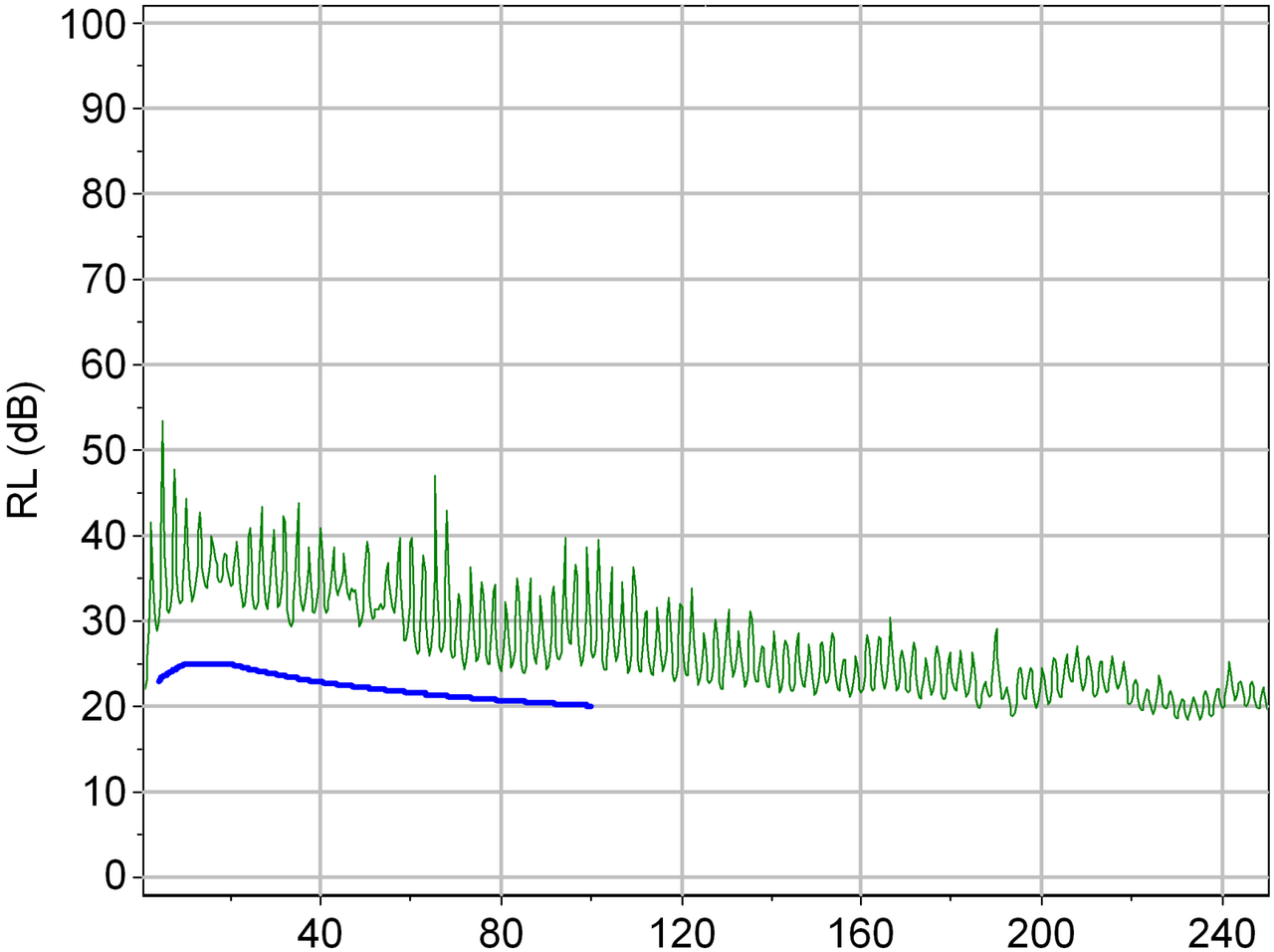 | return loss (RL) | dB | 23,0 | 25,0 | 25,0 | 25,0 | 23,6 | 21,5 | 20,1 | 18,8 | 18,8 | 17,3 |