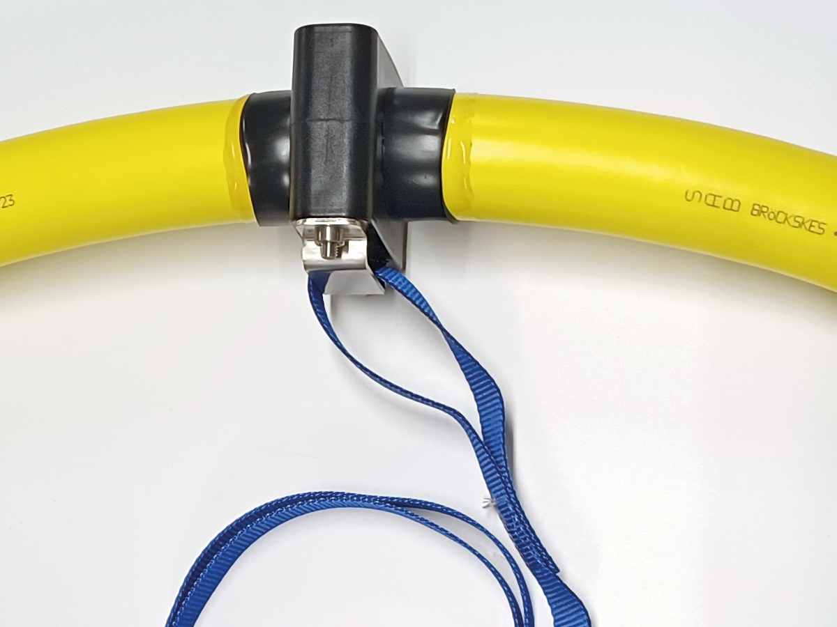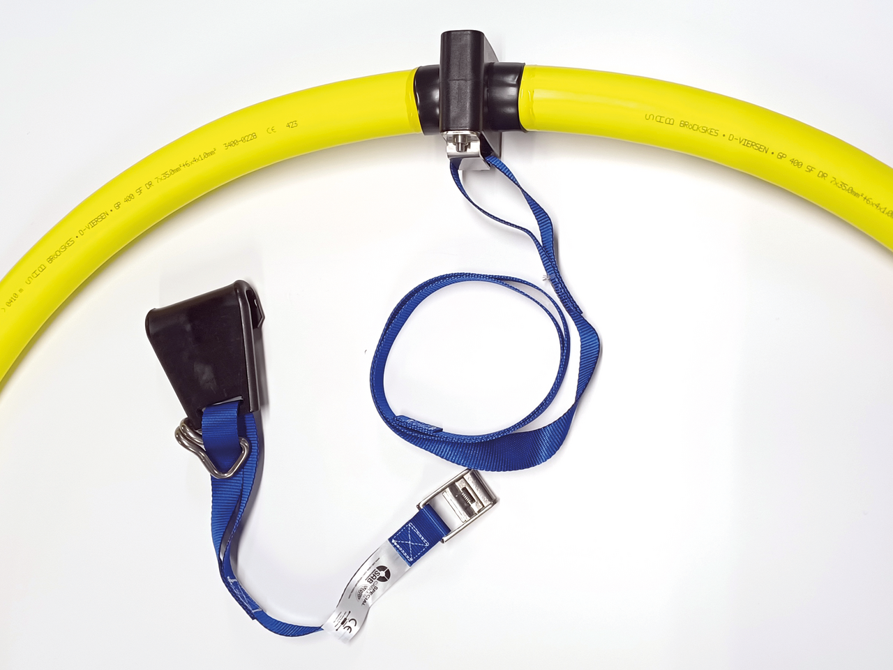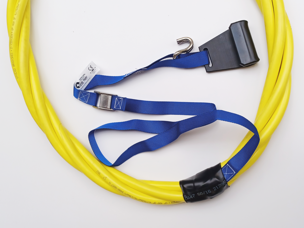The strain relief serves as a reliable safety measure to prevent the cable from being accidentally pulled out of the connector receptacle on the aircraft. It can be easily attached to the connector – either using a hook or, on certain aircraft types such as the B737/B757, using a special plastic claw.