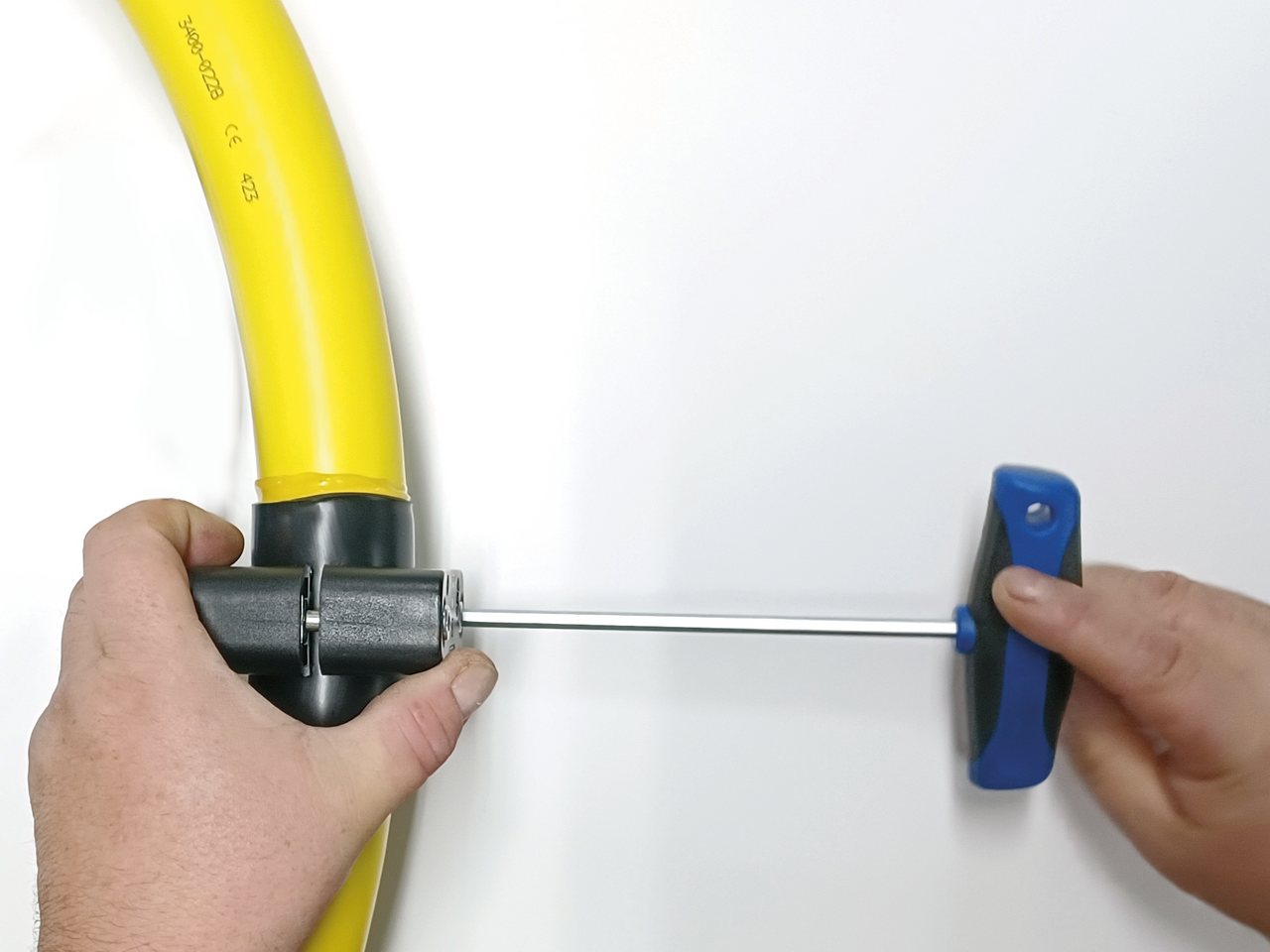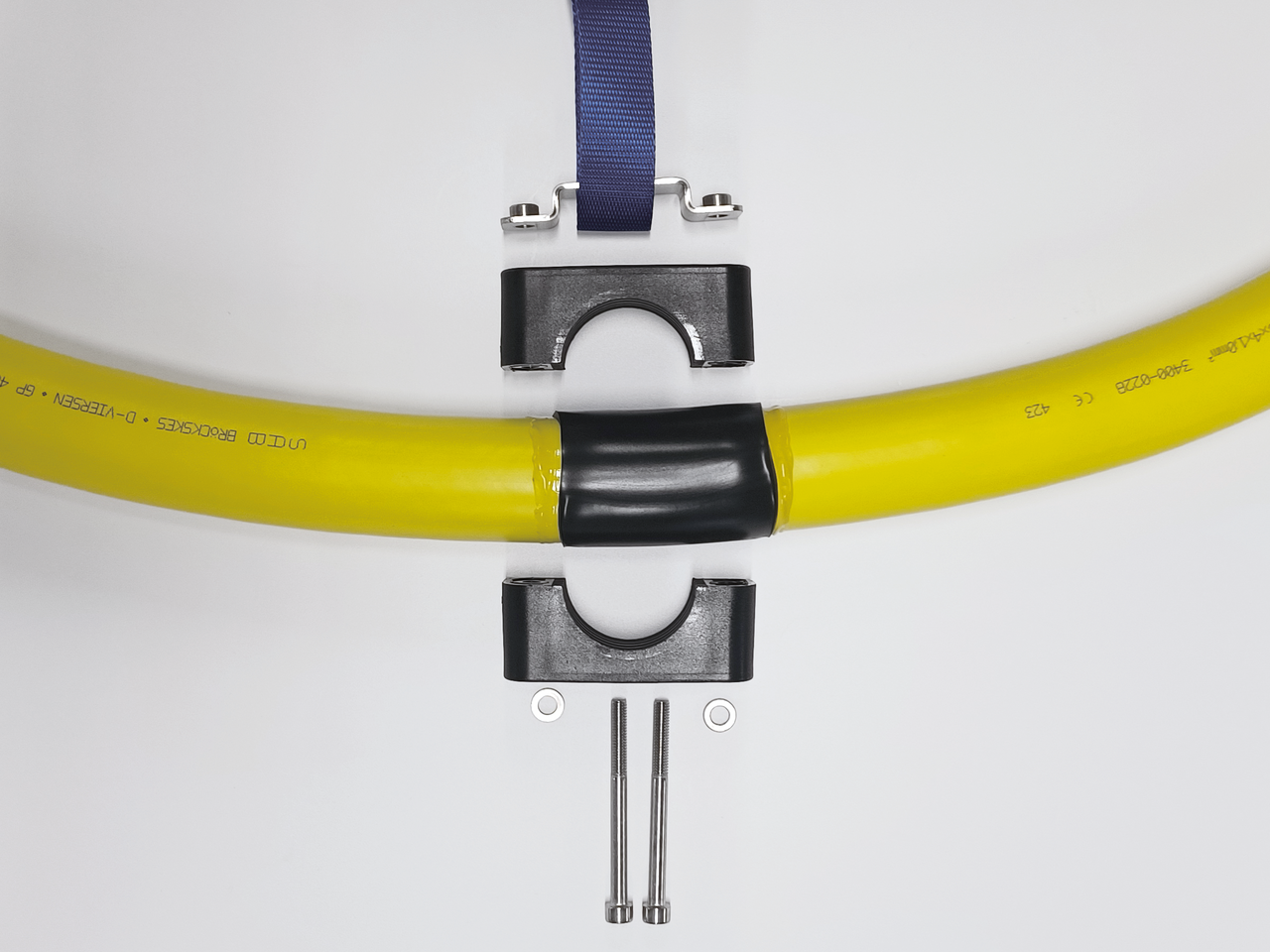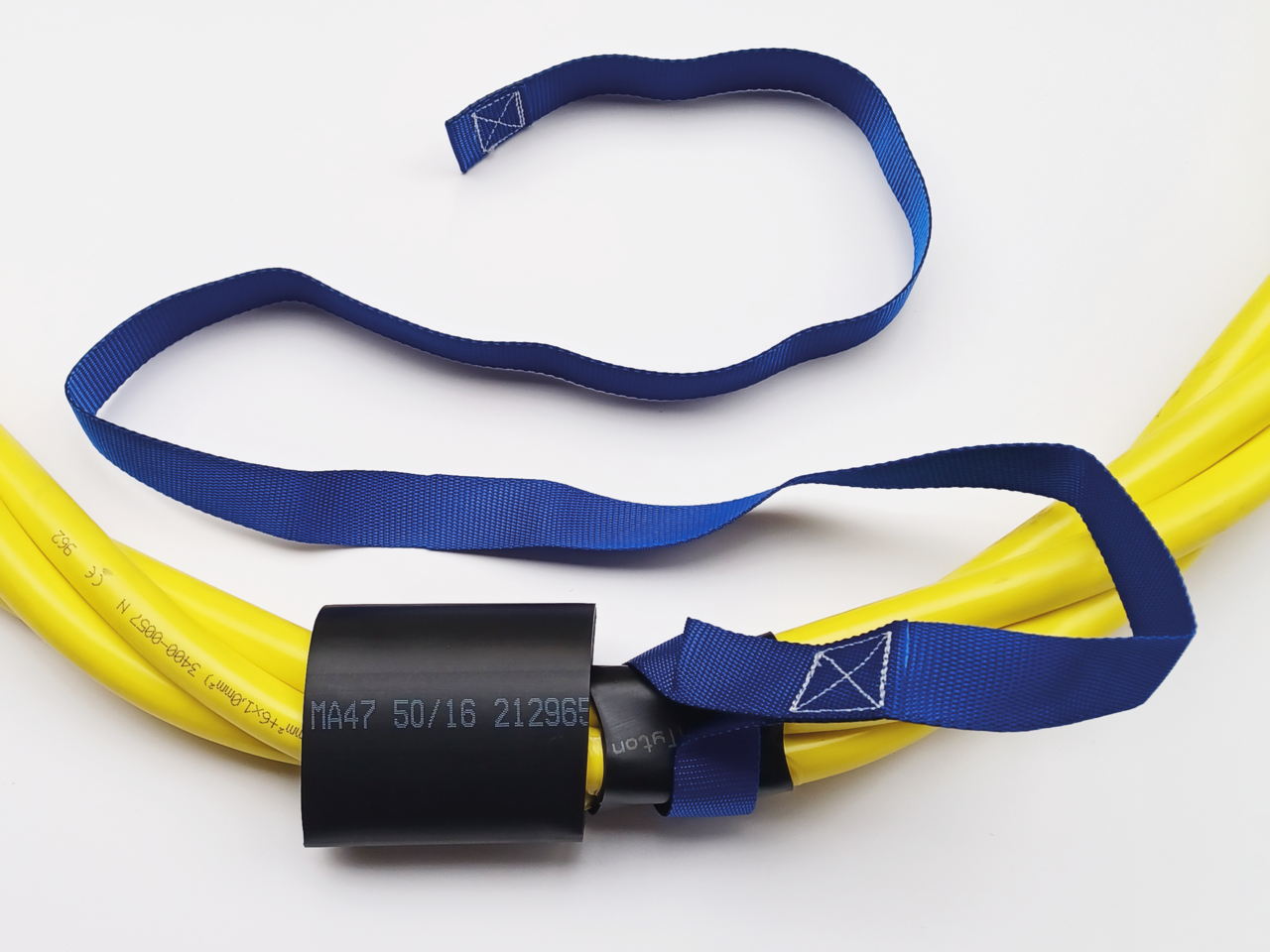 The strain relief serves as a reliable safety measure to prevent the cable from being accidentally pulled out of the connector receptacle on the aircraft. It can be easily attached to the connector – either using a hook or, on certain aircraft types such as the B737/B757, using a special plastic claw.