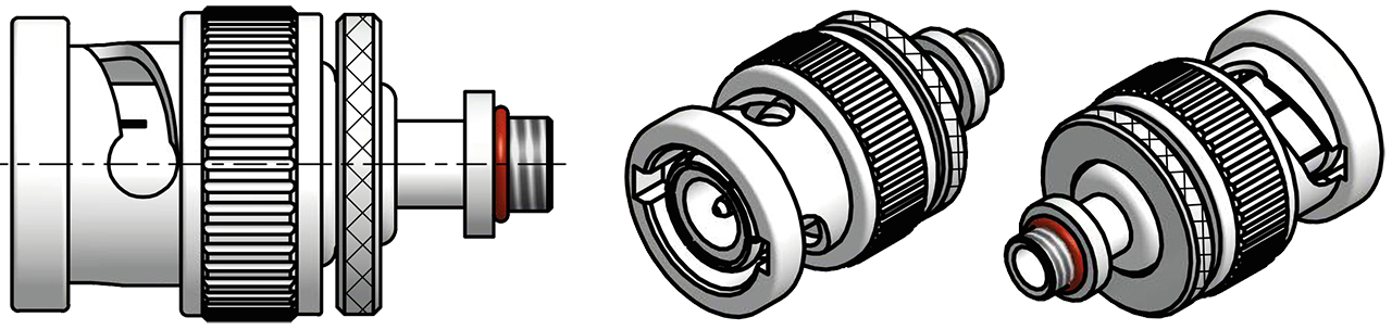 with Lemo male connector, 9-pole, code G and 3 x BNC female connector