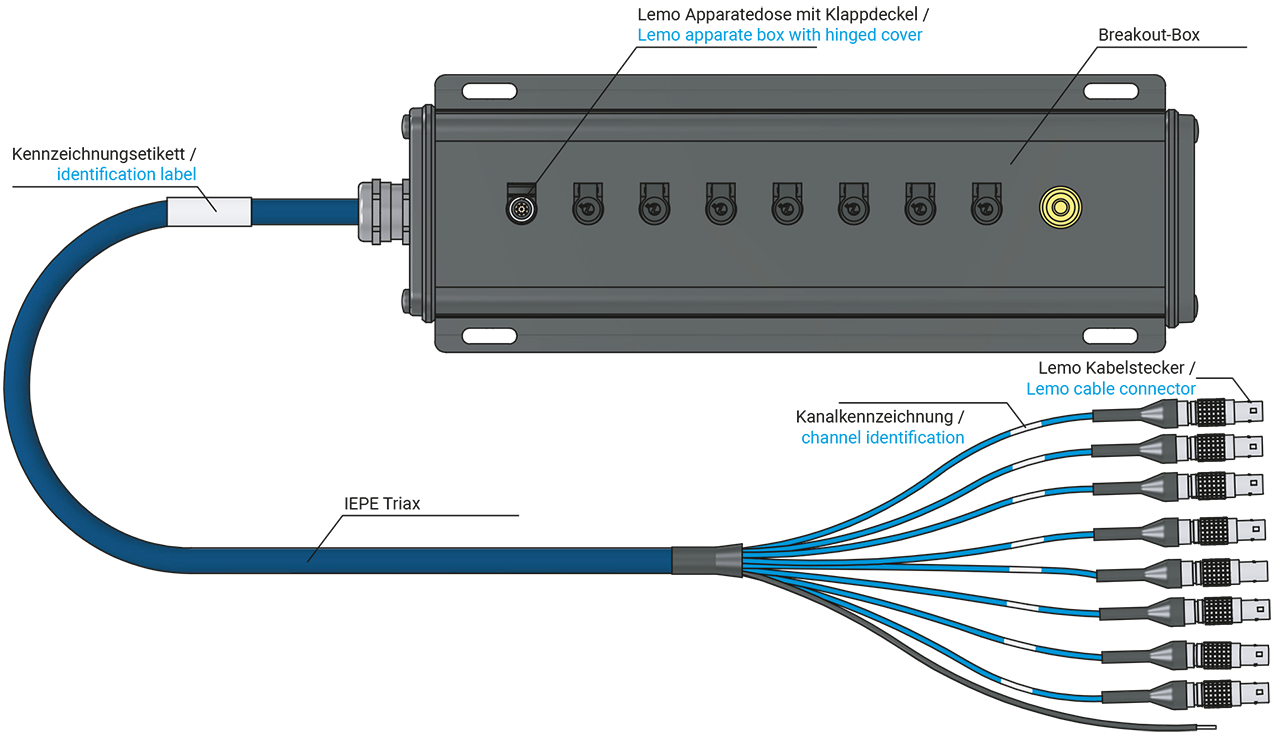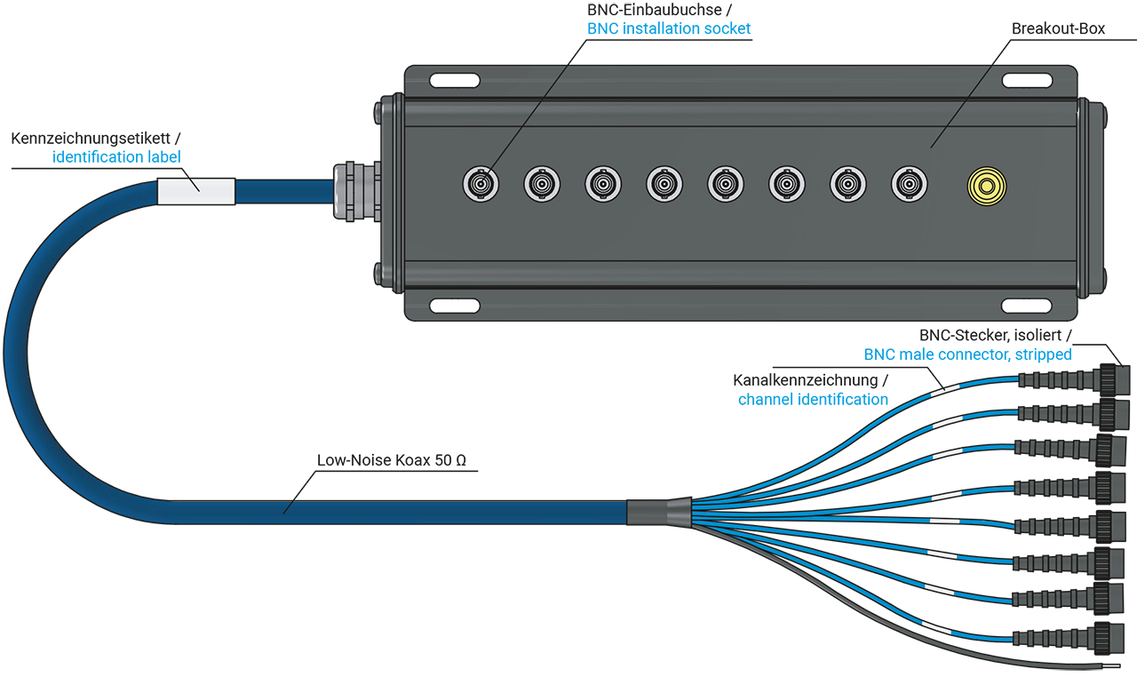 Breakout box with 8-fold coax multicore cable (low-noise)