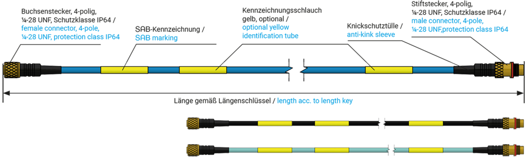 | side 2 | male connector ¼-28 UNF, 4-pole |