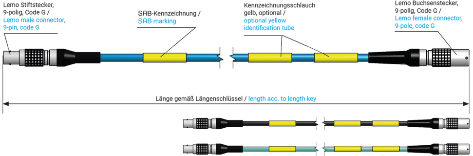 for the extension of a sensor connection cable with Lemo connector 9-pole code G