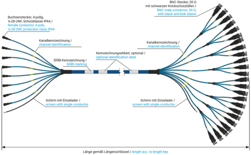 Multicore cable for structured and proper installation and recording, e.g. on the test bench
