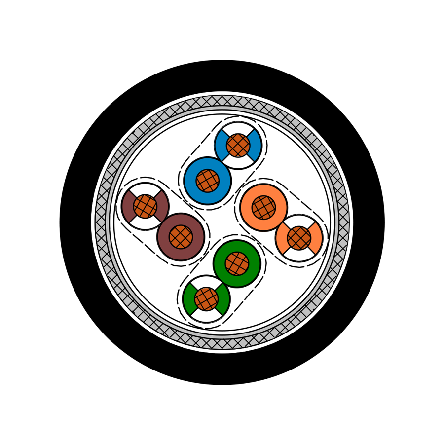 | Stranding | cores twisted to pairs, pairs together |