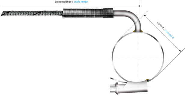 - Individual parameters, e. g. connection cable, double thermocouple, pipe-clamp-Ø or cable end can be added or modified on request.