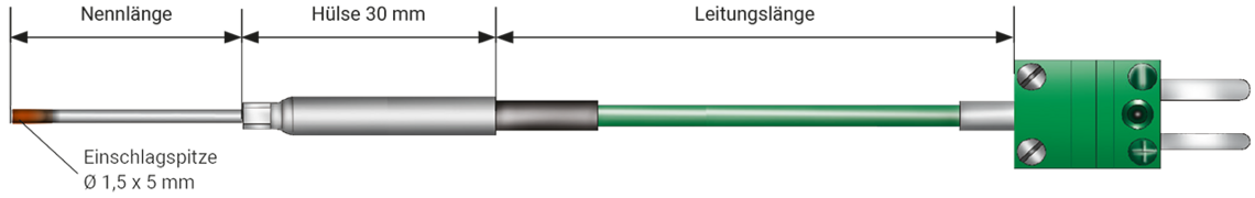 | Connection cable | - Thermocouple extension cable 2 x 0,22 mm² (FEP / C / FEP) - Thermocouple extension cable 2 x 0,22 mm² (FEP / FEP) - other connection cables - on request (see technical data) |