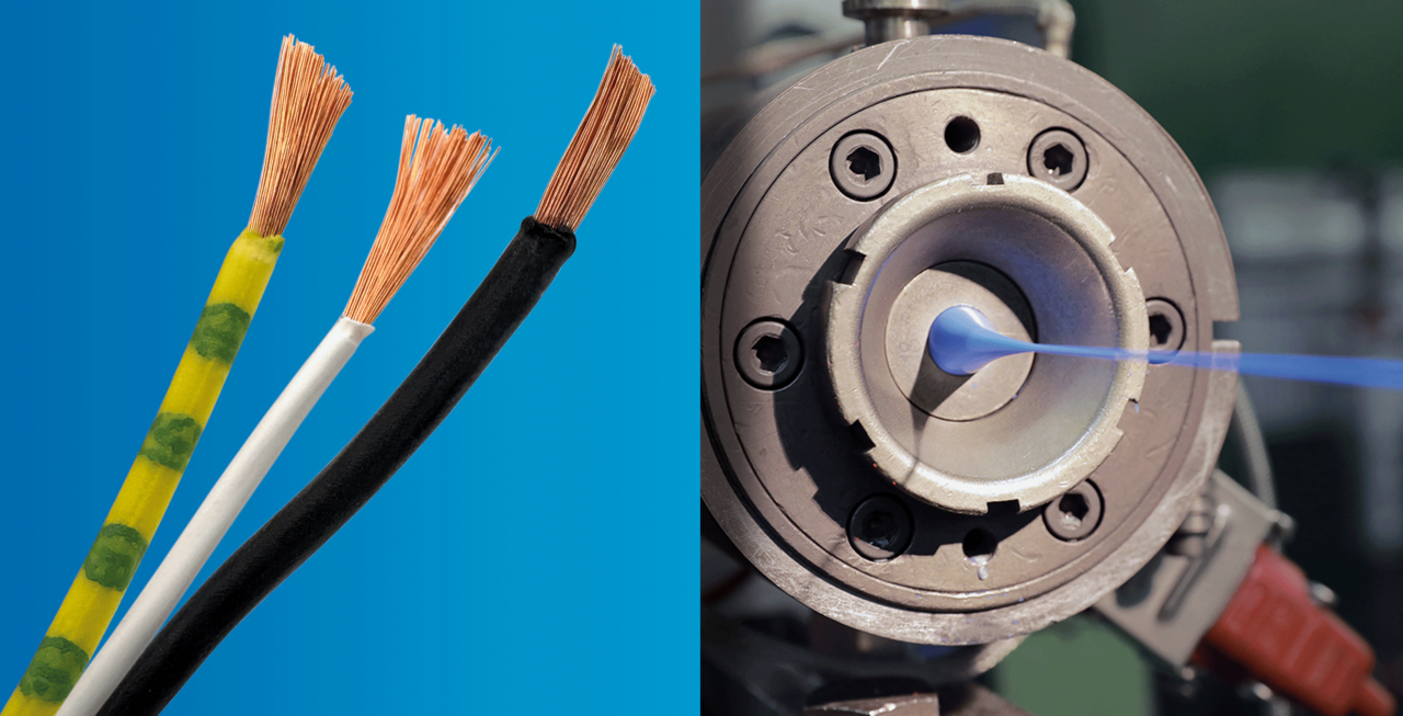 The next step is insulating the conductor. A suitable thermoplastic – e.g., PVC, PE, PP, or XLPE – is melted in an extruder and applied evenly around the conductor. The insulated wire is then cooled in a water bath, giving it mechanical stability. Colors or numbers are added to ensure safe identification in the final cable cross-section.